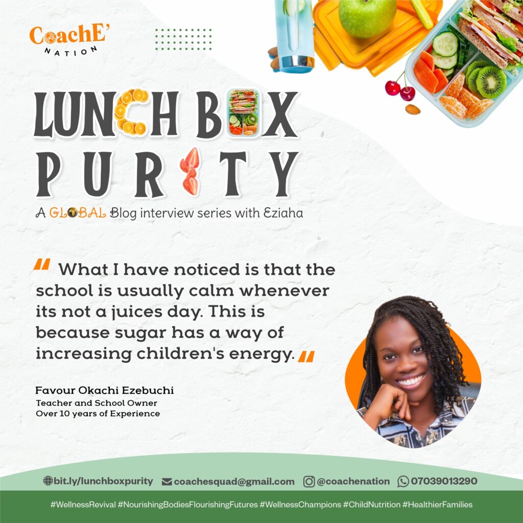 What I noticed is that the school is usually calm whenever it’s not a Juice day. This is because sugar has a way of increasing children’s energy. If I am to help a school transition, the best practice will be to call for a parent meeting and organize a talk show on this. We must make them understand what junk really is, it impact on children and even they as adults. The truth is most people don’t know what junk really is so they feel that if they were deprived of all these due to financial situation while growing up then their child shouldn’t be denied of it.