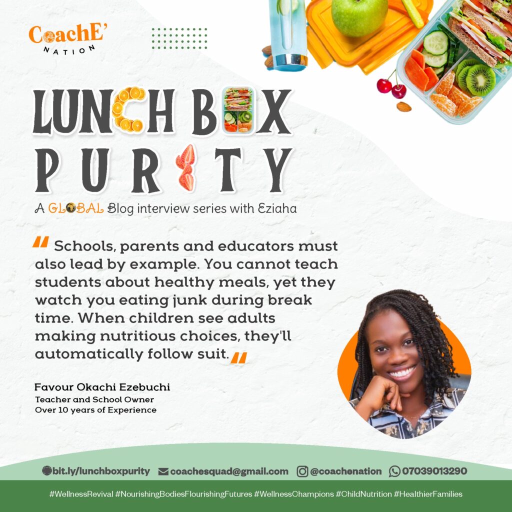 If it’s coming from an educator then the educator must first make sure his/her school is delivering value in all ramifications otherwise the parents may not give you a listening ear.We have to actively promote healthier food options. We also have to highlight the benefit of this choices and provide nutritional information that’ll empower the children to be informed. So that when the parents is eliminating certain foods, the child knows ‘why’ and doesn’t meet the decision with opposition.